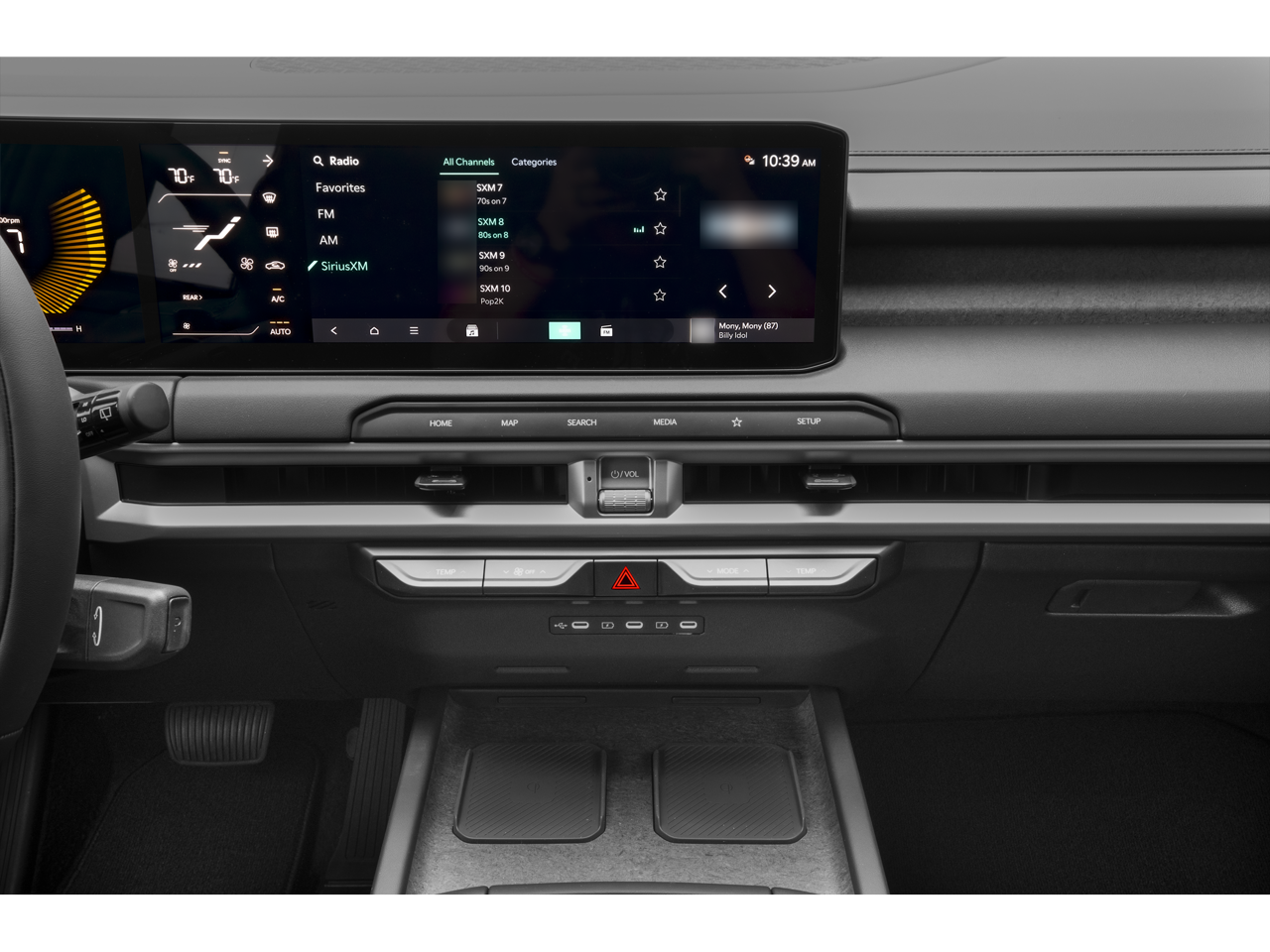 - Radio: AM/FM Display Audio System -inc: 12.3" center infotainment w/navigation, wireless Apple CarPlay and Android Auto, SiriusXM, Bluetooth® w/voice recognition, 8 SoundHound speakers, passenger talk, Wi-Fi hotspot, Kia Connect, Over-the-Air update capability and 1 data USB-C port in front row