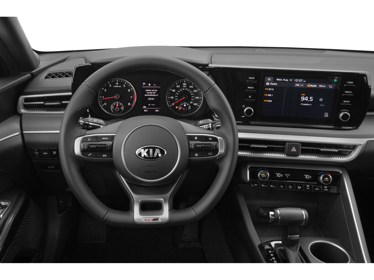 Scores 37 Highway MPG and 27 City MPG! This Kia K5 delivers a Intercooled Turbo Regular Unleaded I-4 1.6 L/98 engine powering this Automatic transmission. GT-LINE FWD PREMIUM PACKAGE, EBONY BLACK, CARPETED FLOOR MATS.
